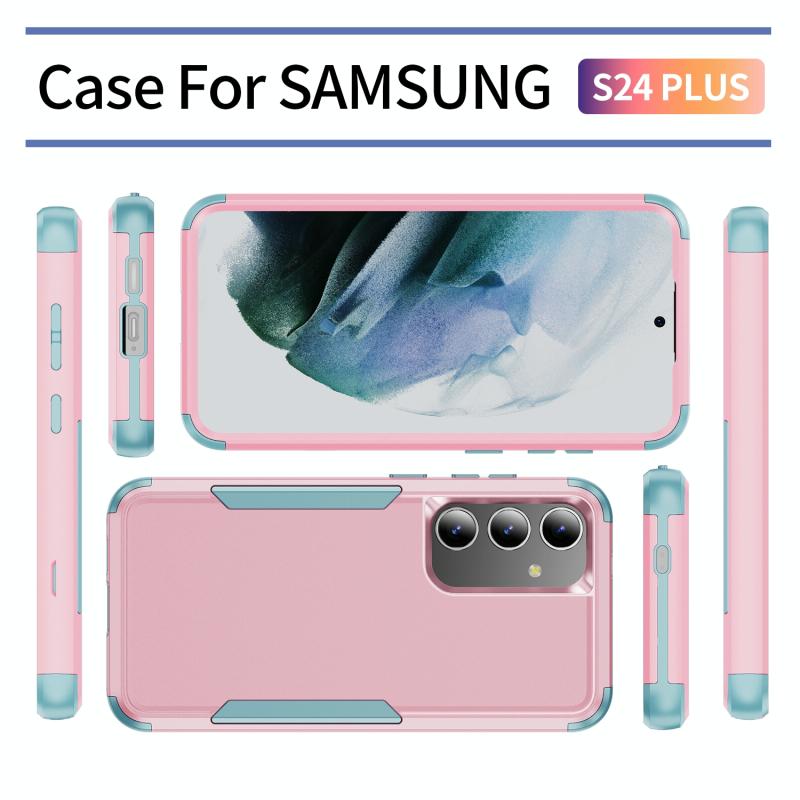 For Samsung Galaxy S24+ 5G TPU + PC Shockproof Protective Phone Case(Pink + Grey Green)