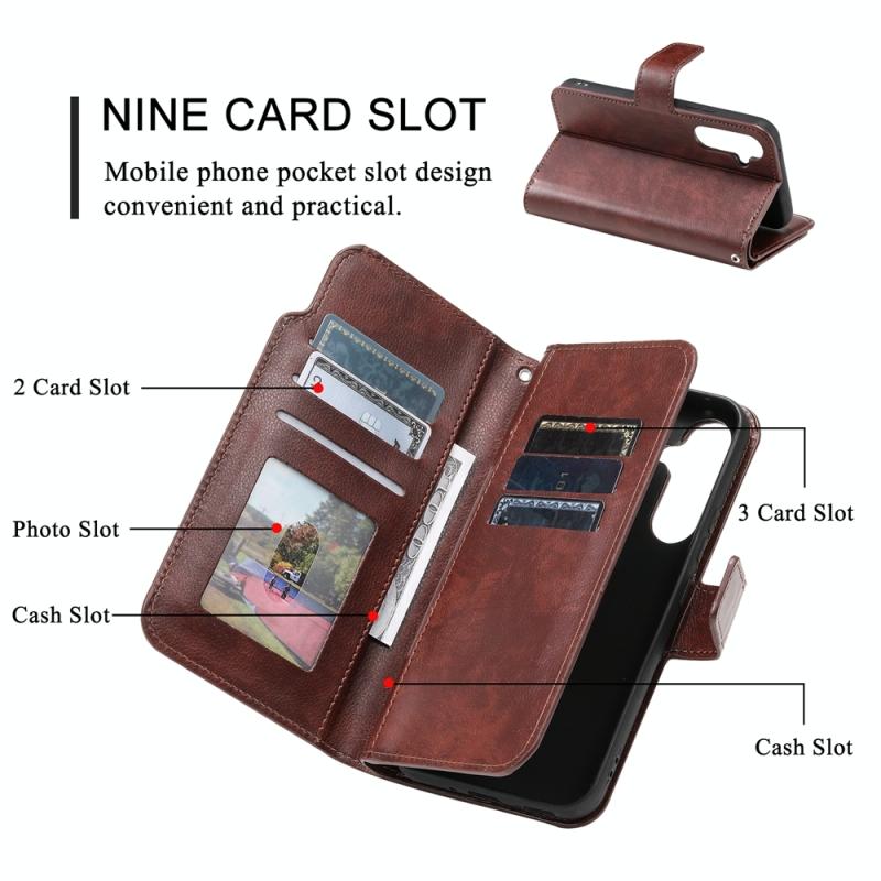 For Samsung Galaxy S24+ 5G Tri-Fold 9-Card Wallets Leather Phone Case(Brown)