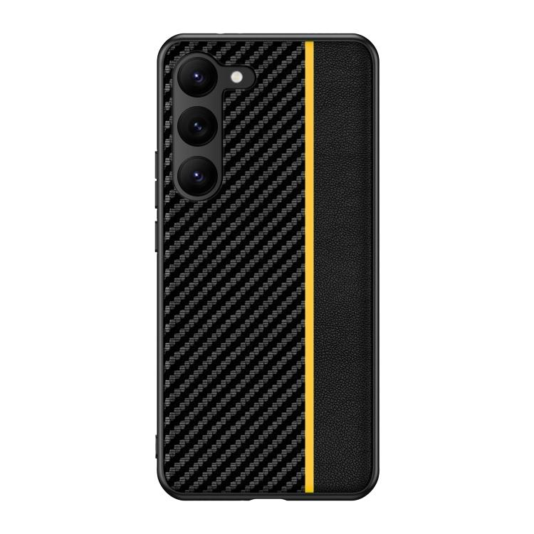 For Samsung Galaxy S24+ 5G Ultra-thin Carbon Fiber Texture Splicing Phone Case(Yellow)
