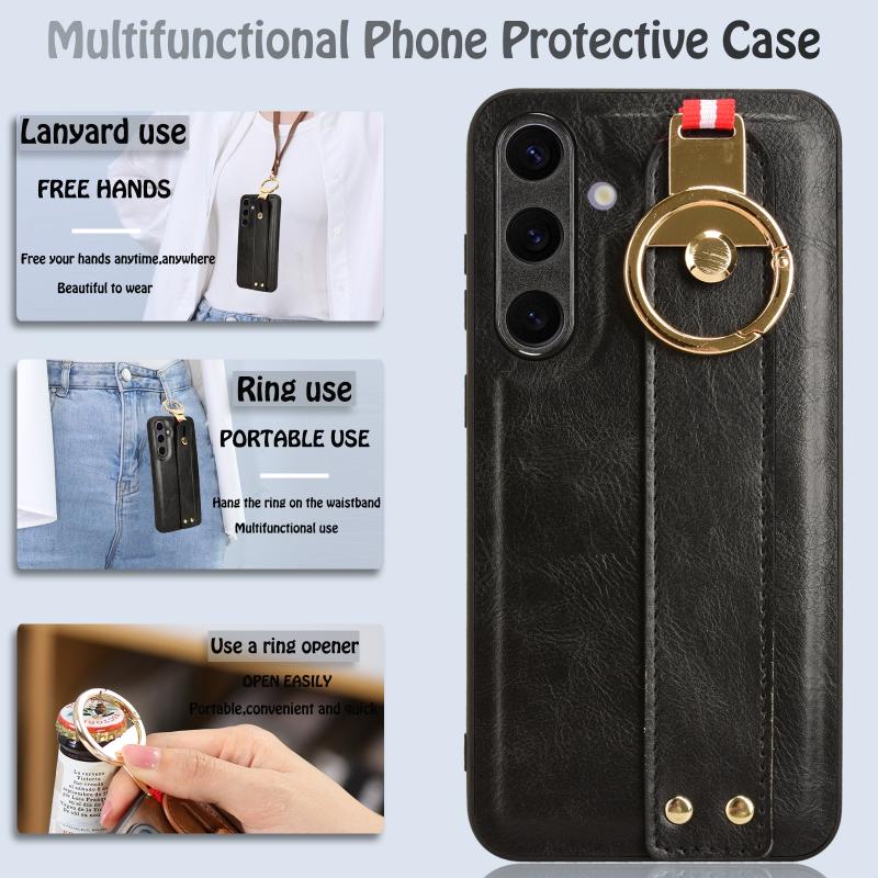 For Samsung Galaxy S24+ 5G Wristband Leather Back Phone Case(Black)