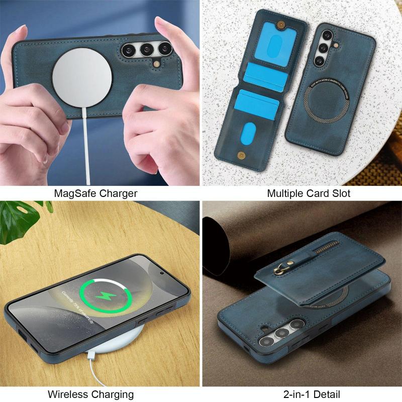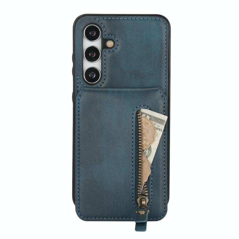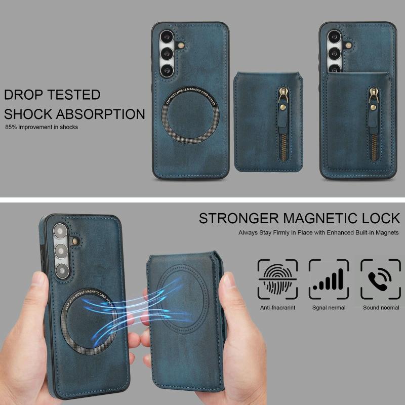 For Samsung Galaxy S24 5G Zipper Wallet Split MagSafe Leather Back Phone Case(Blue)