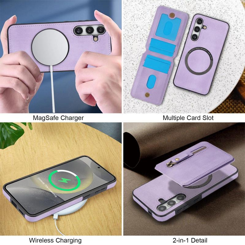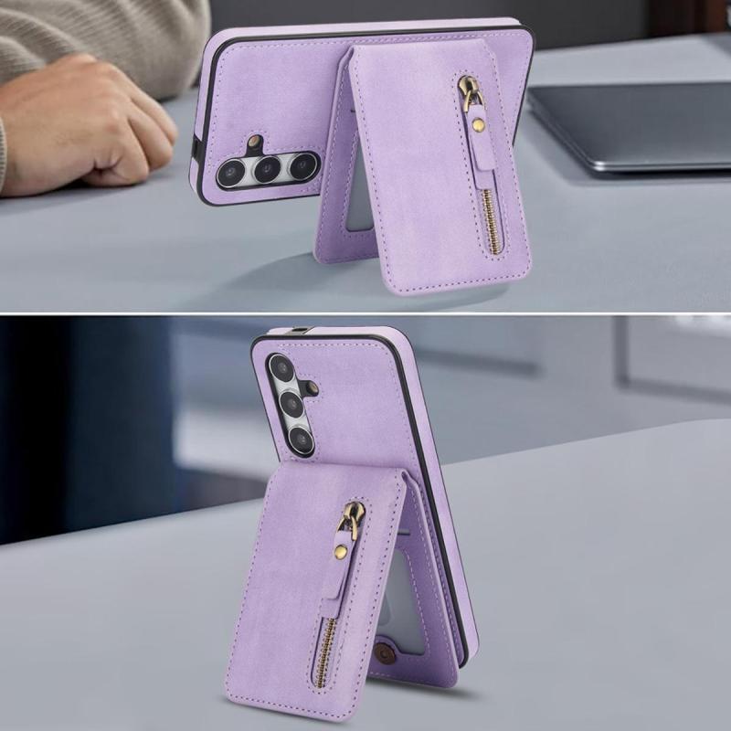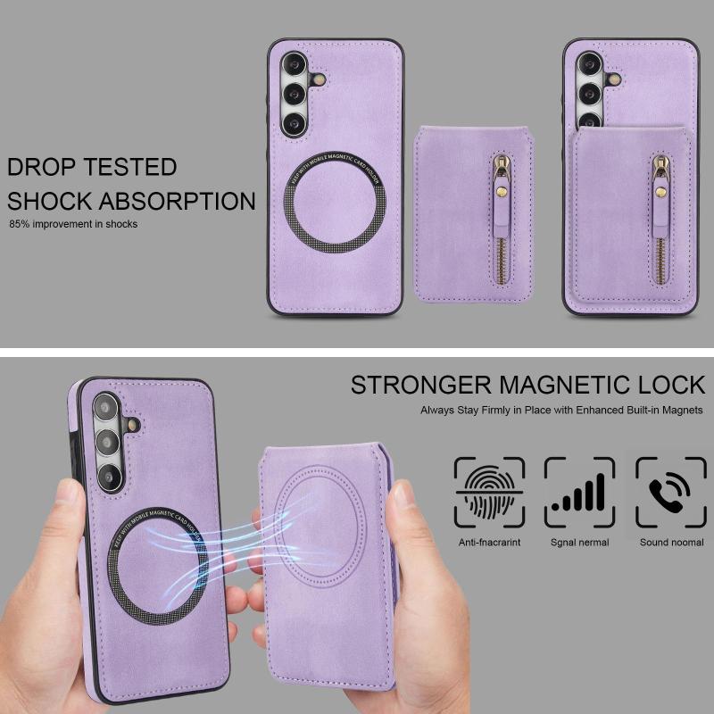 For Samsung Galaxy S24+ 5G Zipper Wallet Split MagSafe Leather Back Phone Case(Purple)