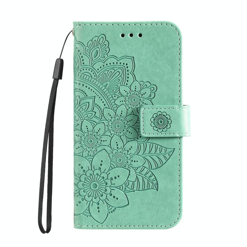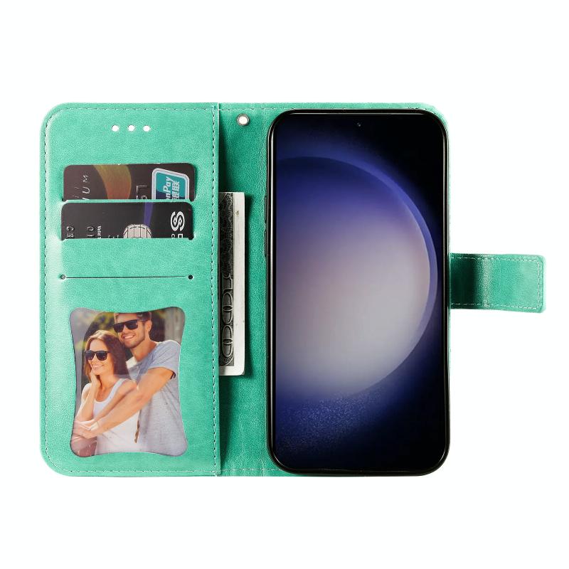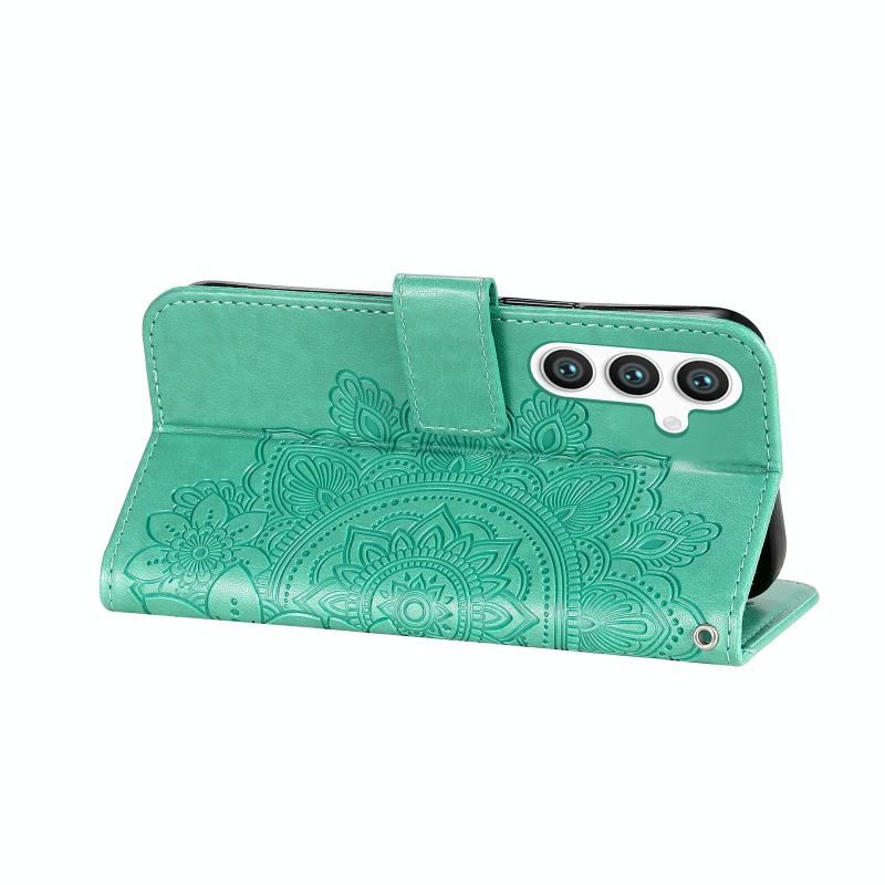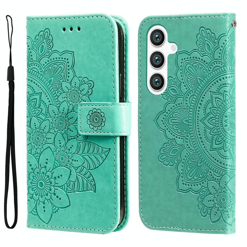 For Samsung Galaxy S24+ 7-petal Flowers Embossing Leather Phone Case(Green)