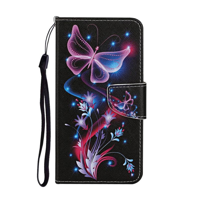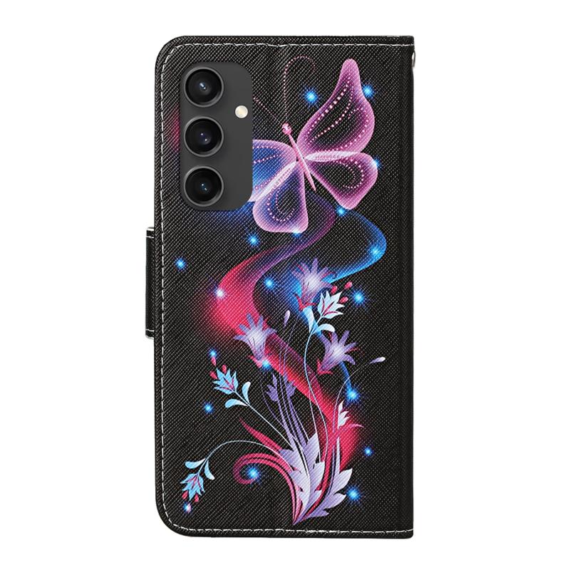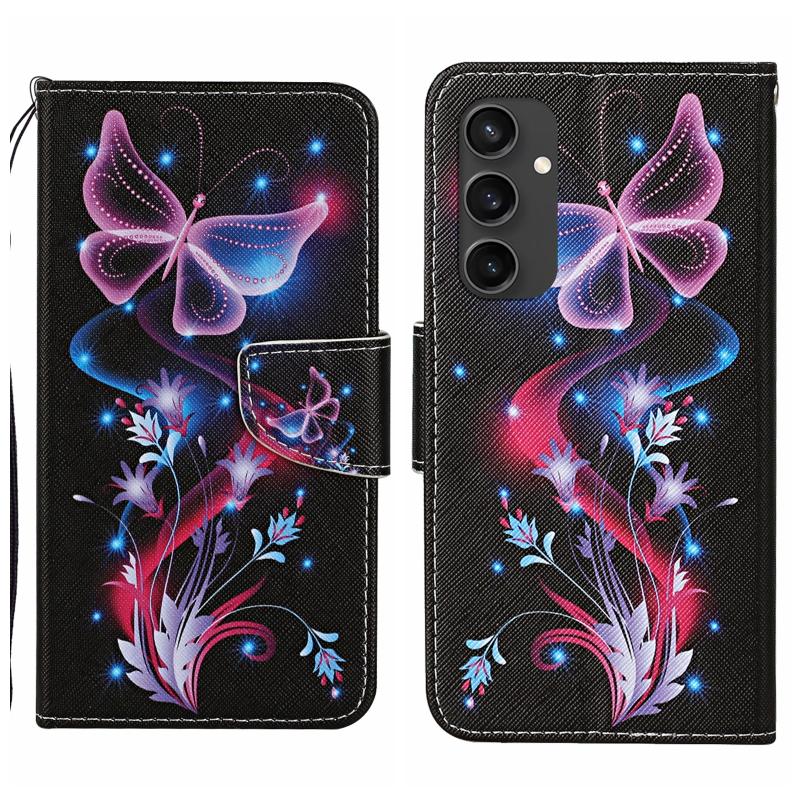 For Samsung Galaxy S24 FE 5G 3D Colored Drawing Flip Leather Phone Case(Fluorescent Butterfly)