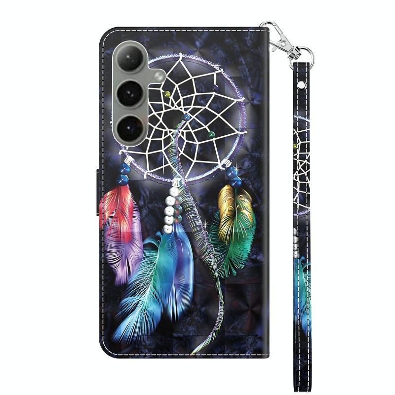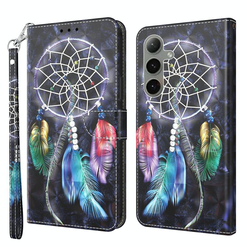For Samsung Galaxy S24 FE 5G 3D Painted Leather Phone Case(Colorful Dreamcatcher)
