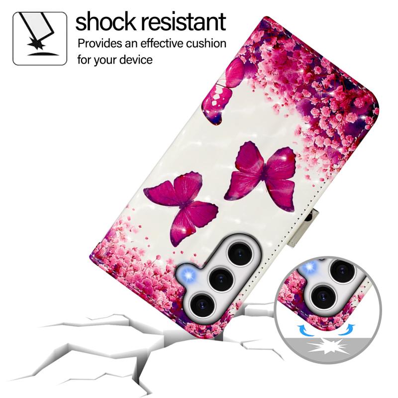 For Samsung Galaxy S24 FE 5G 3D Painting Horizontal Flip Leather Phone Case(Rose Butterfly)