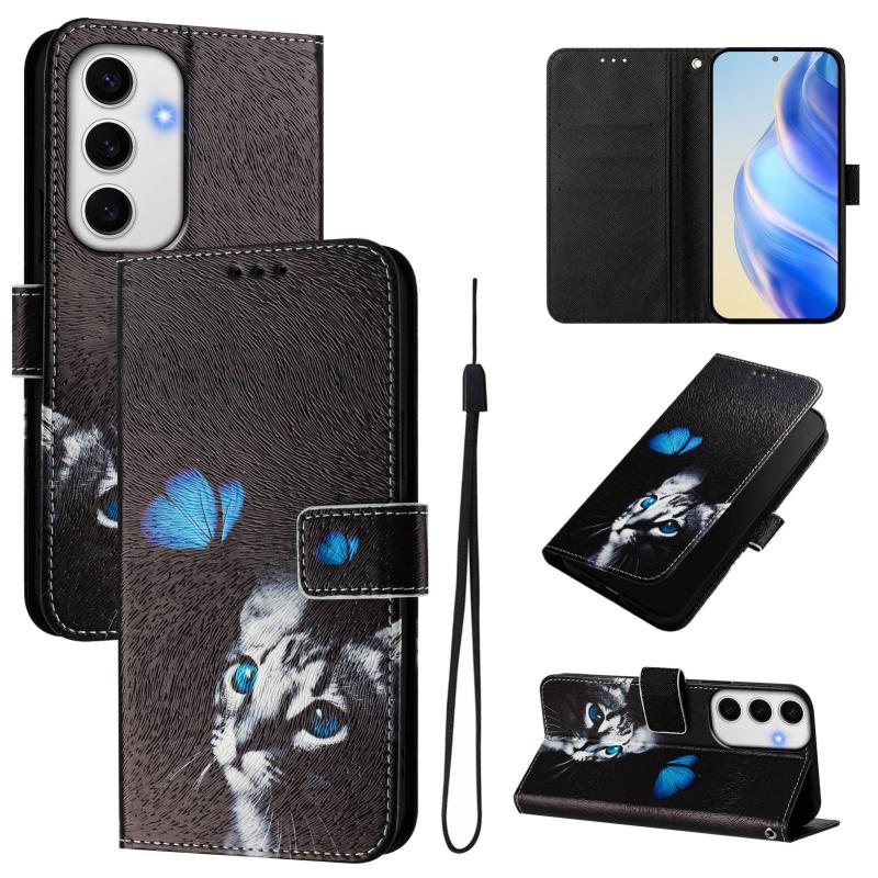 For Samsung Galaxy S24 FE 5G Art Colored Drawing Pattern Leather Phone Case(Butterfly cat)