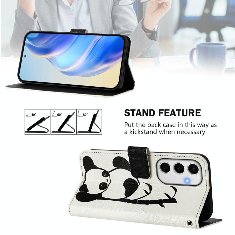 For Samsung Galaxy S24 FE 5G Art Colored Drawing Pattern Leather Phone Case(Panda)