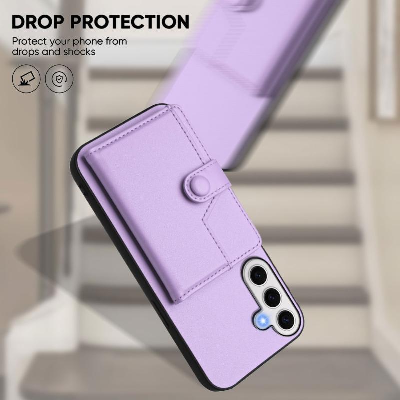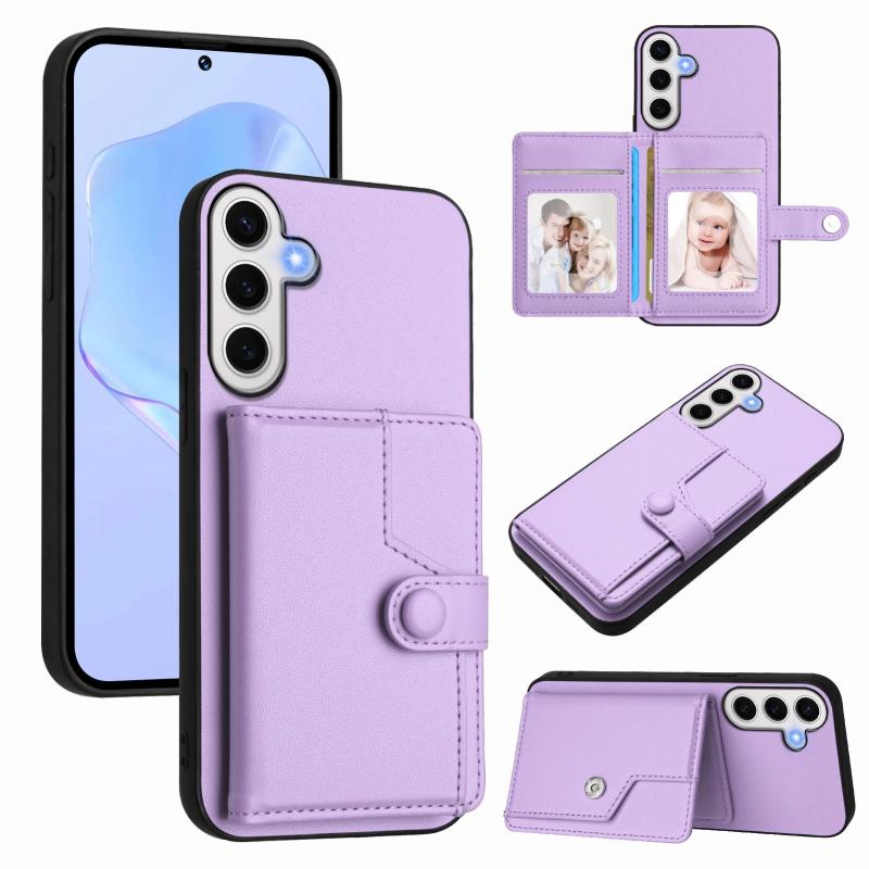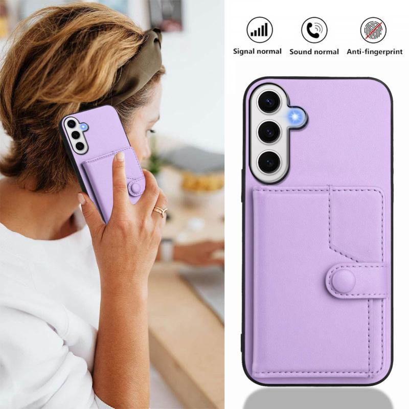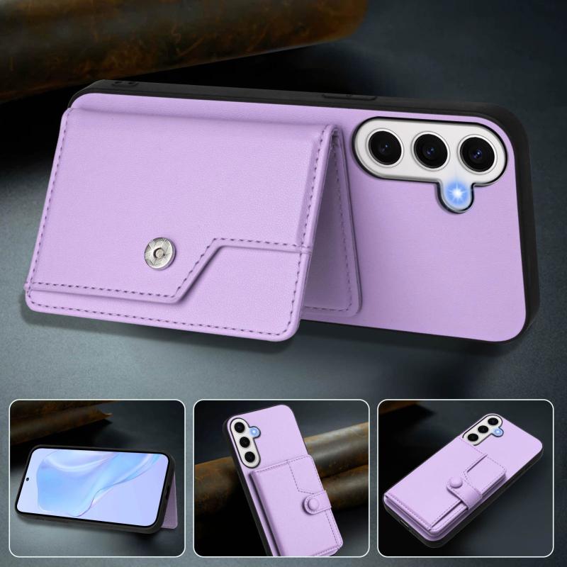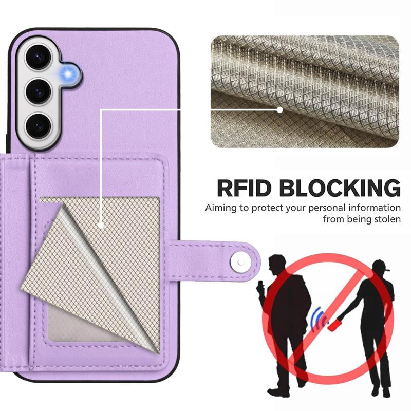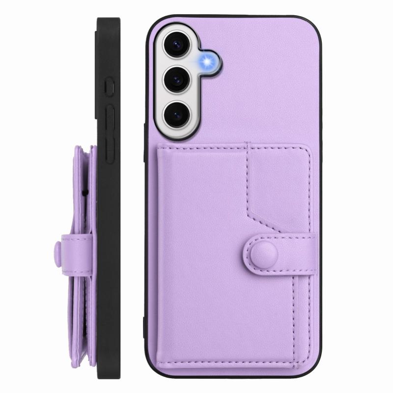 For Samsung Galaxy S24 FE 5G Button Card Bag RFID Anti-theft Phone Case(Purple)