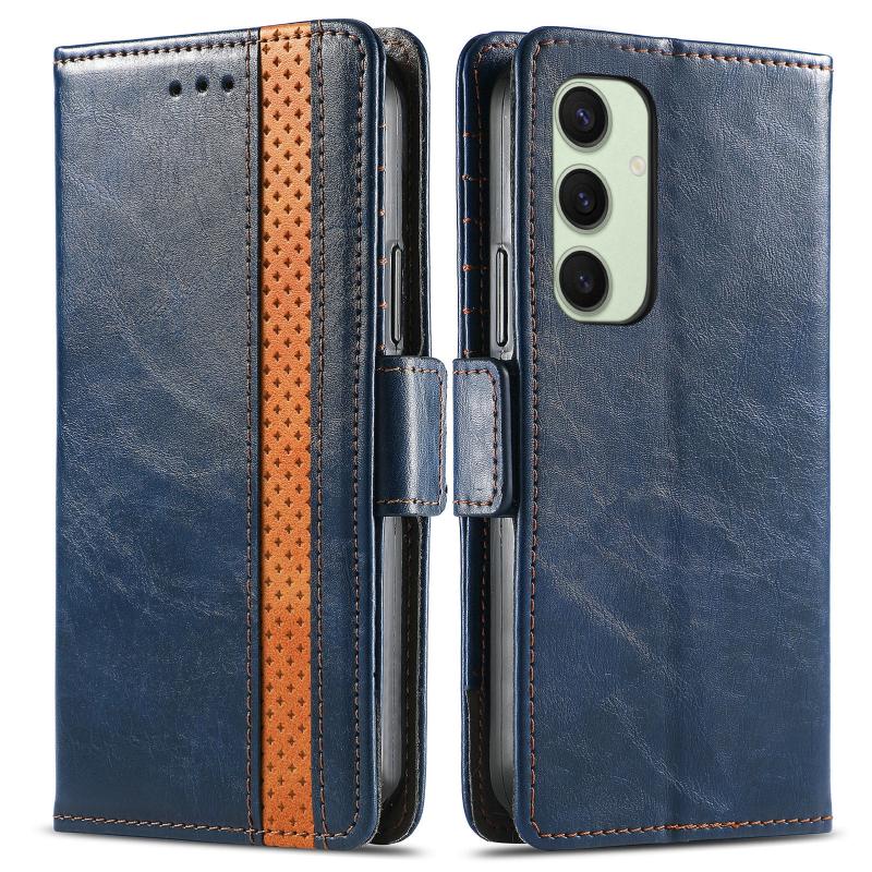 For Samsung Galaxy S24 FE 5G CaseNeo Splicing Dual Magnetic Buckle Leather Phone Case(Blue) (CaseNeo)