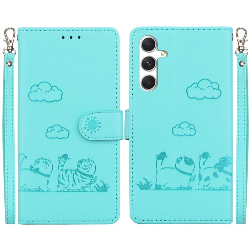 For Samsung Galaxy S24 FE 5G Cute Cats RFID Leather Phone Case(Green)