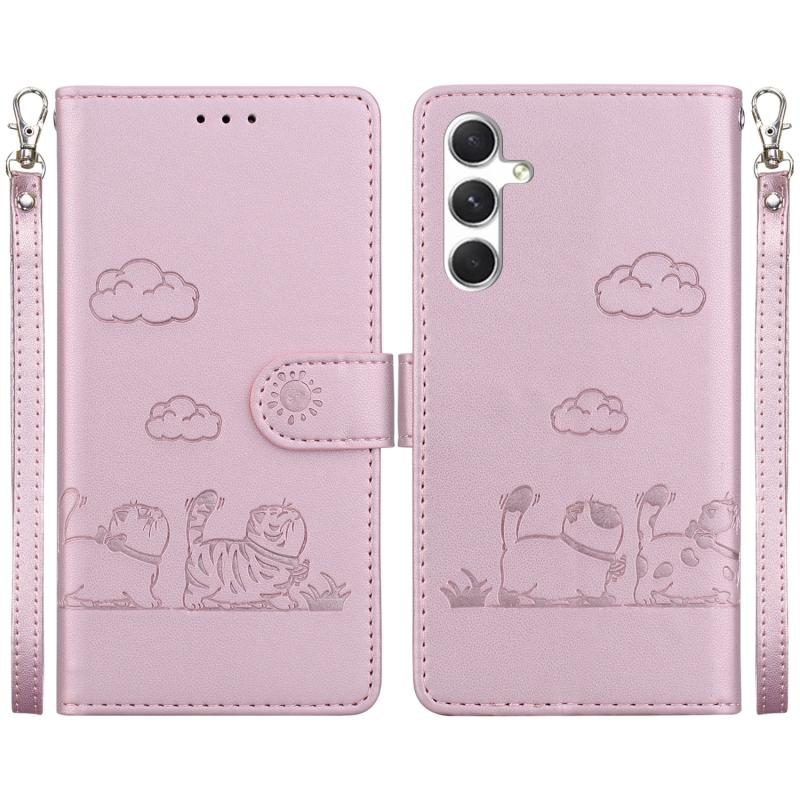 For Samsung Galaxy S24 FE 5G Cute Cats RFID Leather Phone Case(Rose Gold)