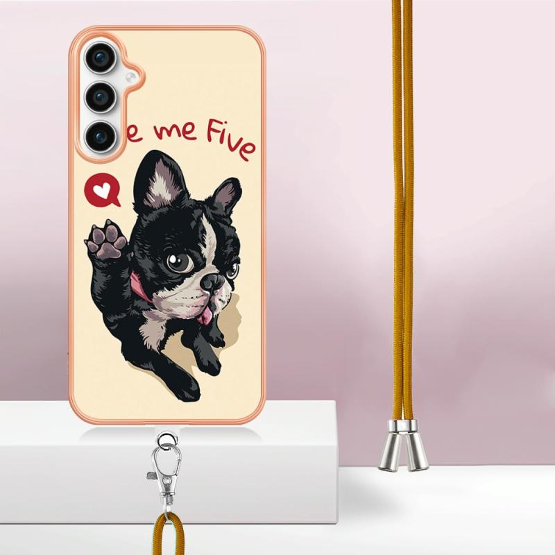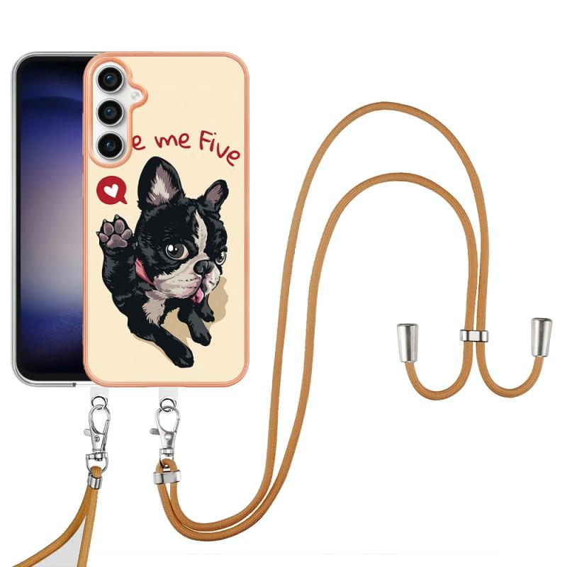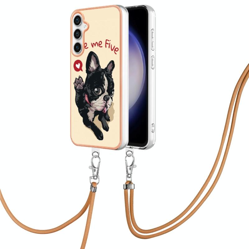 For Samsung Galaxy S24 FE 5G Electroplating Dual-side IMD Phone Case with Lanyard(Lucky Dog)