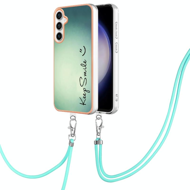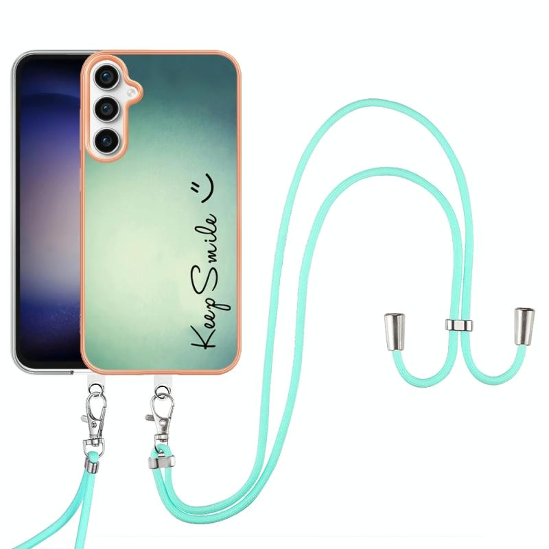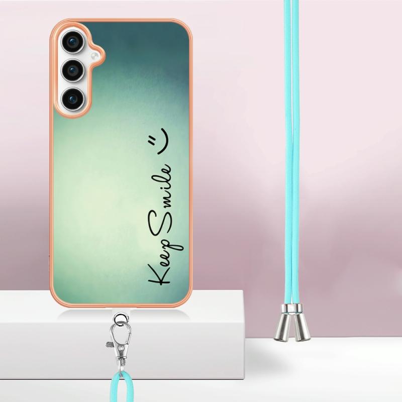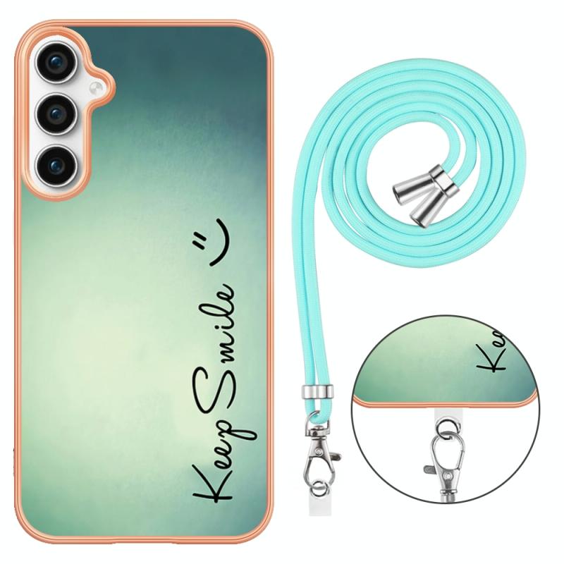 For Samsung Galaxy S24 FE 5G Electroplating Dual-side IMD Phone Case with Lanyard(Smile)