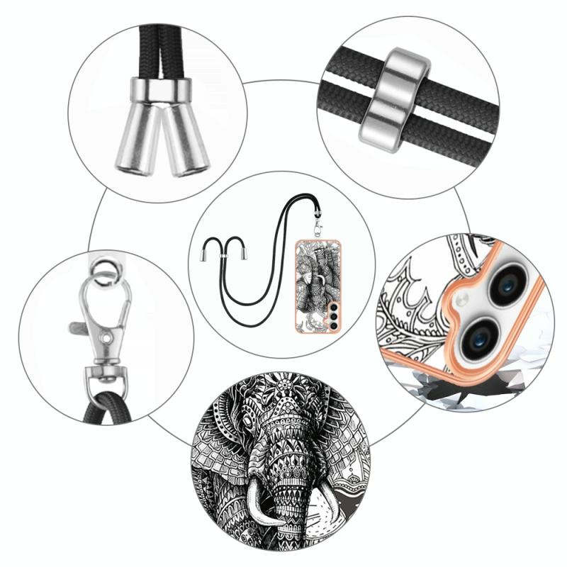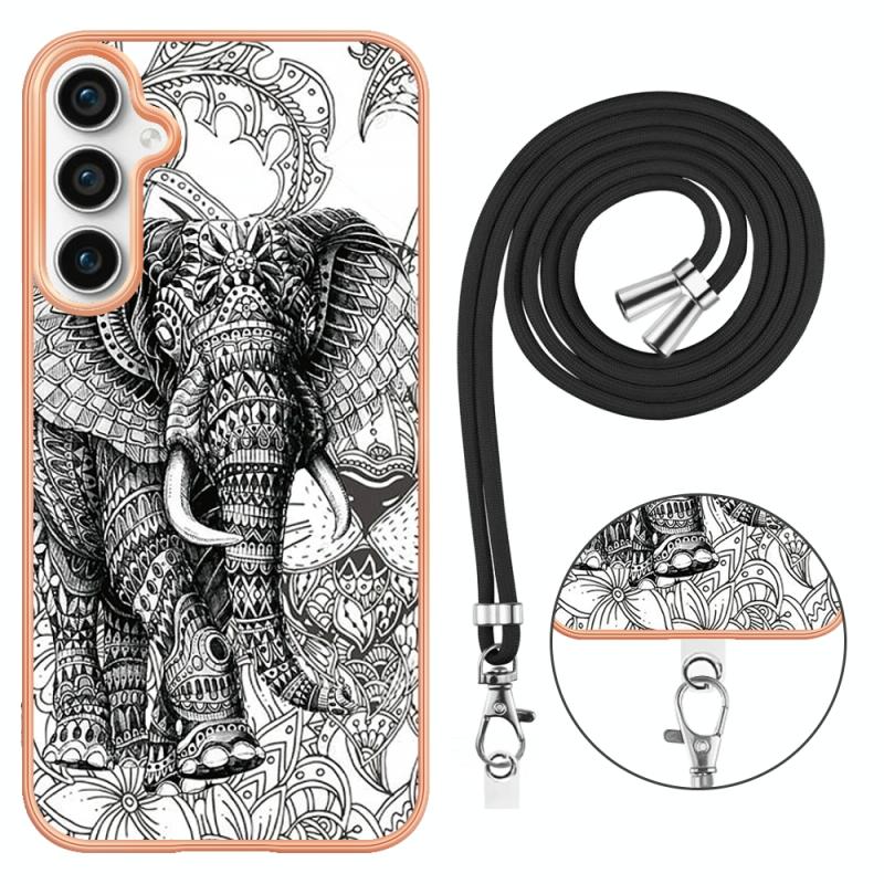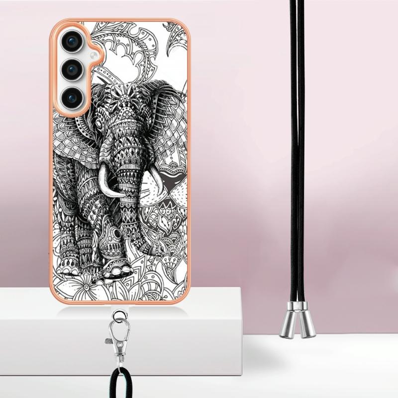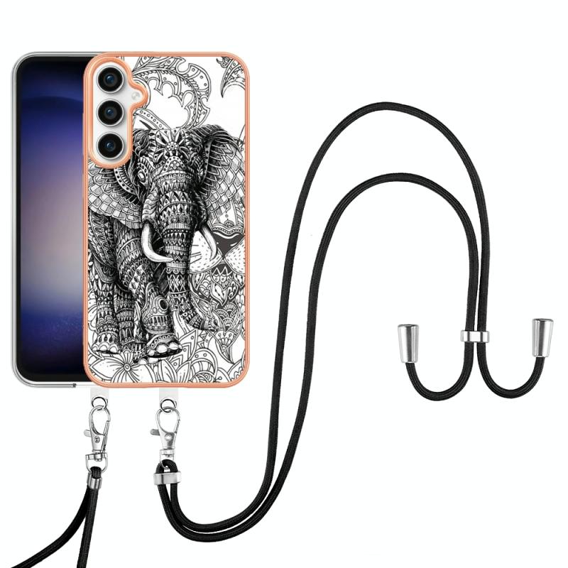 For Samsung Galaxy S24 FE 5G Electroplating Dual-side IMD Phone Case with Lanyard(Totem Elephant)