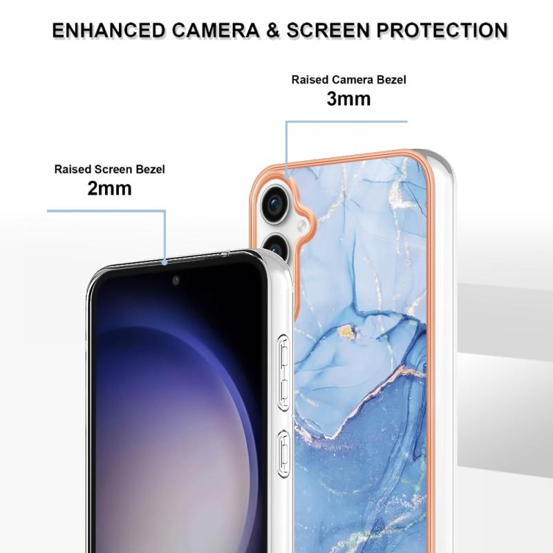 For Samsung Galaxy S24 FE 5G Electroplating Marble Dual-side IMD Phone Case(Blue 018)