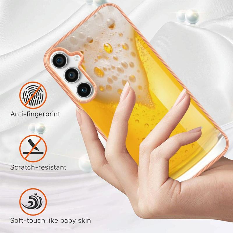 For Samsung Galaxy S24 FE 5G Electroplating Marble Dual-side IMD Phone Case(Draft Beer)