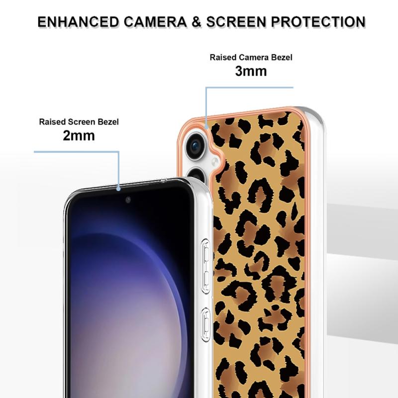 For Samsung Galaxy S24 FE 5G Electroplating Marble Dual-side IMD Phone Case(Leopard Print)