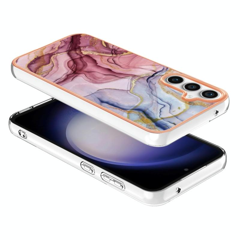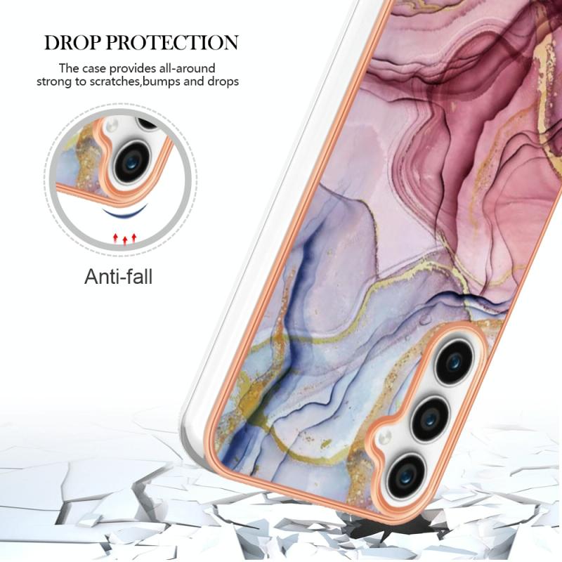 For Samsung Galaxy S24 FE 5G Electroplating Marble Dual-side IMD Phone Case(Rose Red 014)