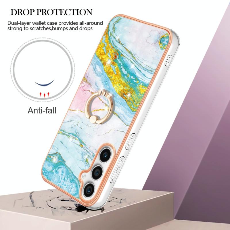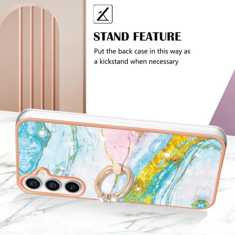 For Samsung Galaxy S24 FE 5G Electroplating Marble IMD TPU Phone Case with Ring Holder(Green 004)