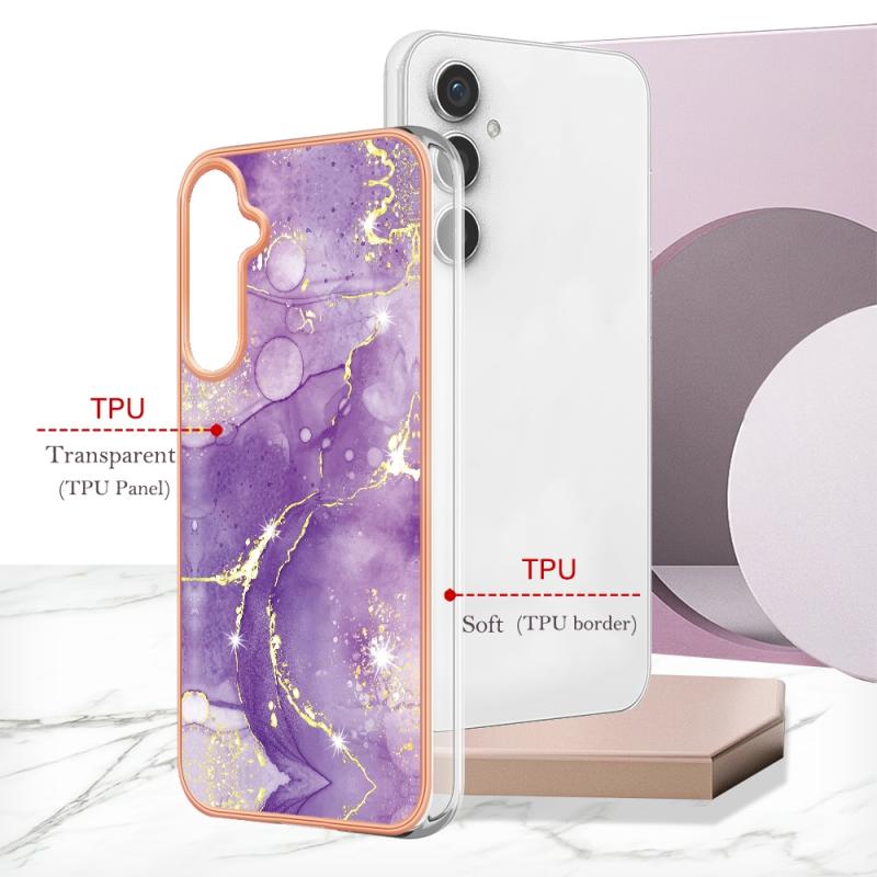 For Samsung Galaxy S24 FE 5G Electroplating Marble Pattern Dual-side IMD TPU Shockproof Phone Case(Purple 002)
