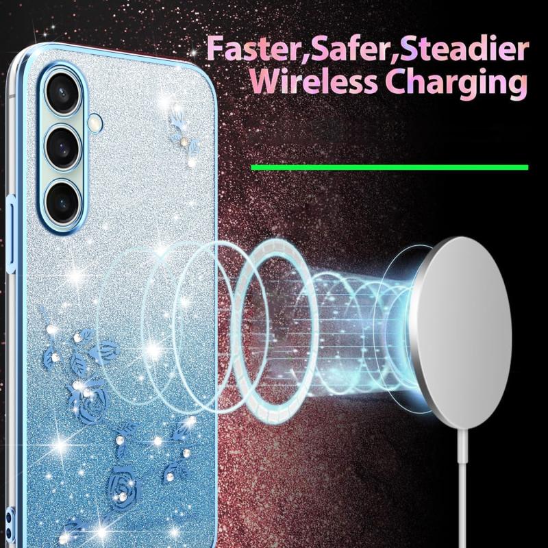For Samsung Galaxy S24 FE 5G Gradient Glitter Flower All-inclusive Phone Case(Blue)
