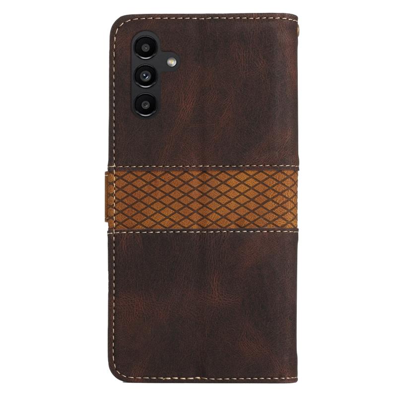 For Samsung Galaxy S24 FE 5G Grid Stitching Leather Phone Case with Lanyard(Brown)