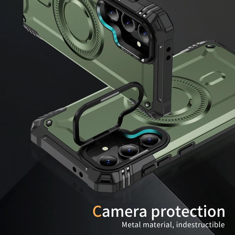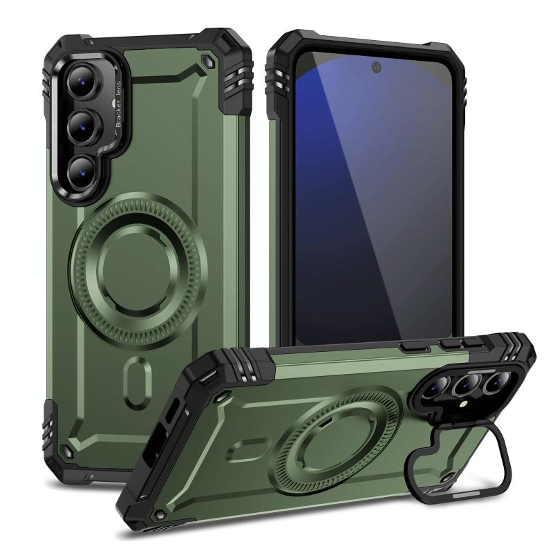 For Samsung Galaxy S24 FE 5G Lens Holder MagSafe Phone Case(Army Green)