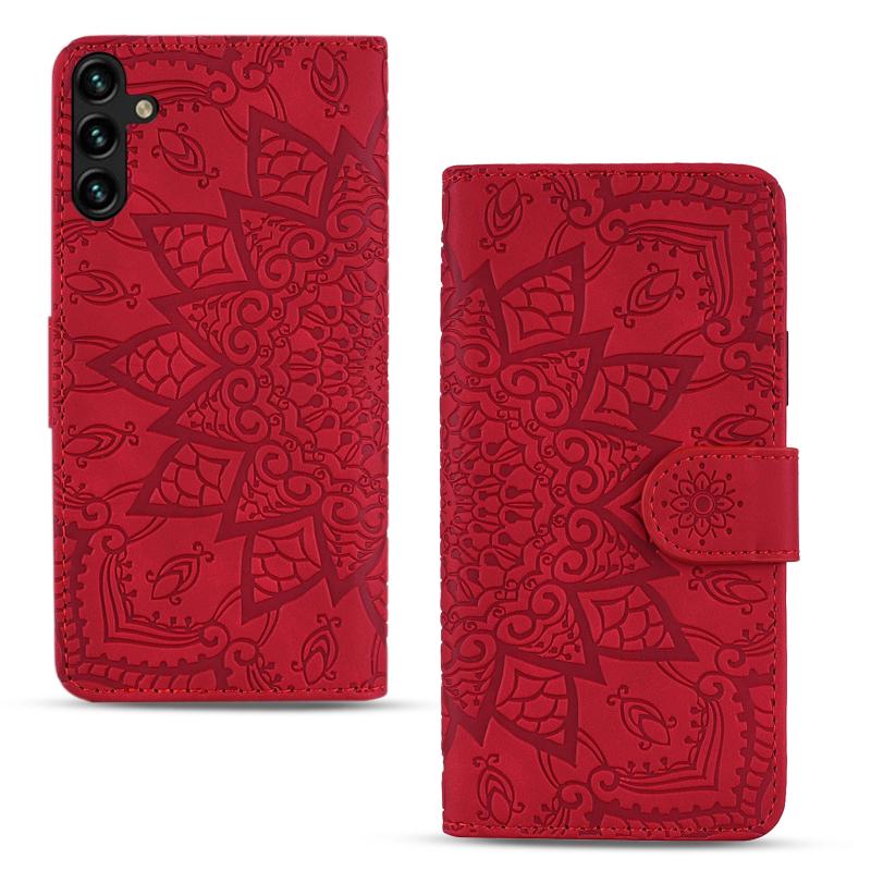 For Samsung Galaxy S24 FE 5G Mandala Embossed Dual-Fold Calf Leather Phone Case(Red)