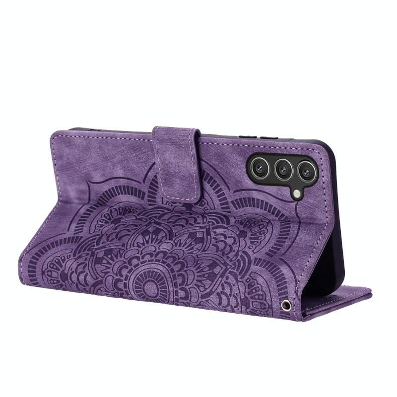 For Samsung Galaxy S24 FE 5G Mandala Embossed Retro Frosted Leather Phone Case(Purple)