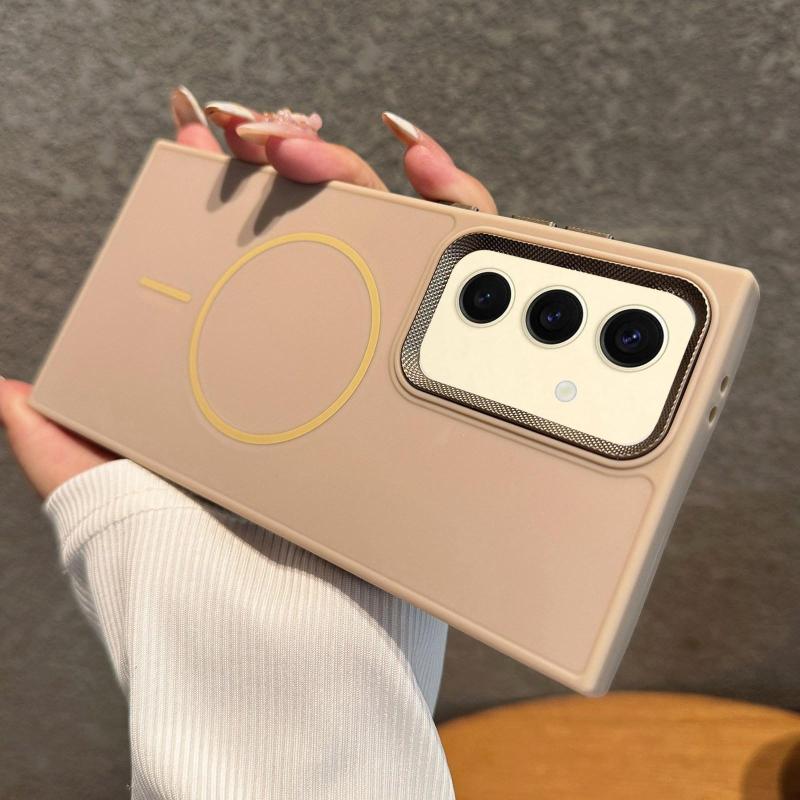 For Samsung Galaxy S24 FE 5G Metal Diamond Texture Lens Frame MagSafe Phone Case(Khaki)