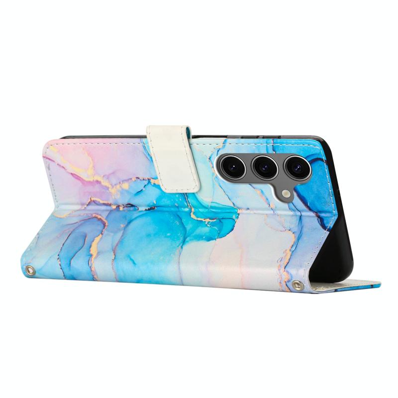 For Samsung Galaxy S24 FE 5G Painted Marble Pattern Leather Phone Case(Pink Green)