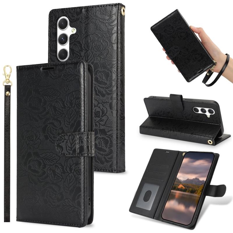 For Samsung Galaxy S24 FE 5G Peony Flowers Imprint Leather Phone Case(Black)