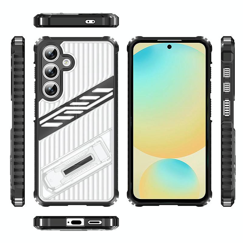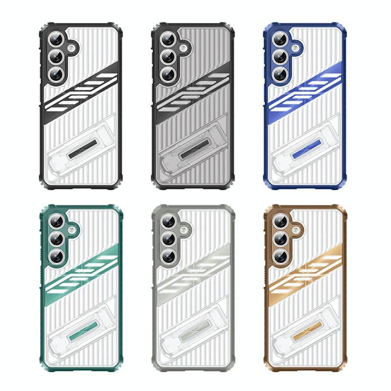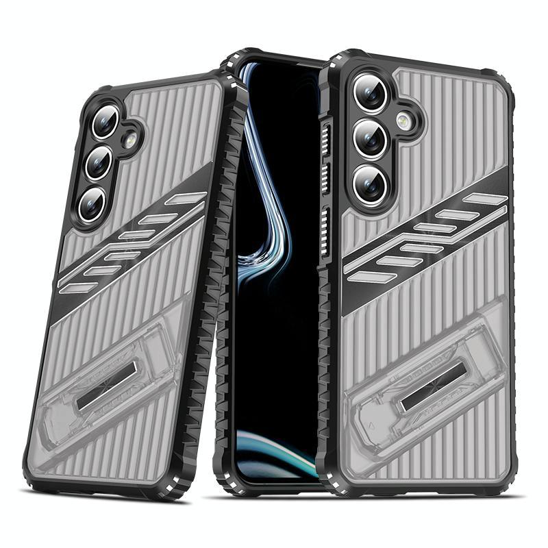 For Samsung Galaxy S24 FE 5G Plating Holder PC Hybrid TPU Phone Case(Gray Black)