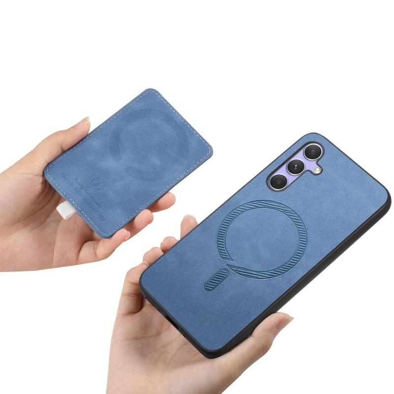 For Samsung Galaxy S24 FE 5G Retro Cross Leather Ring Side Insert Card Bag MagSafe Phone Case(Blue)