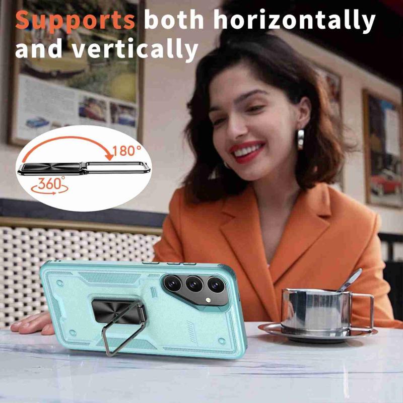 For Samsung Galaxy S24 FE 5G Ring Holder PC Hybrid TPU Phone Case(Blue)