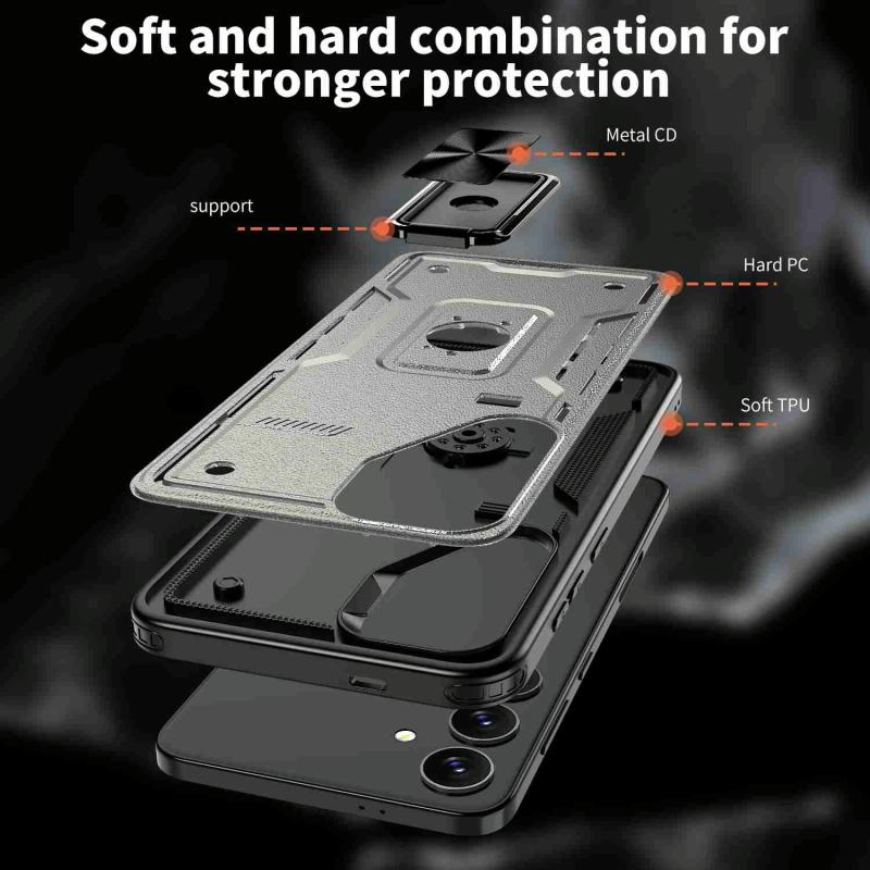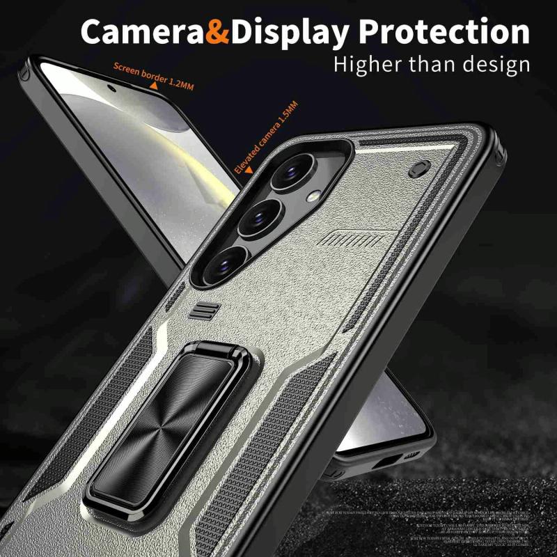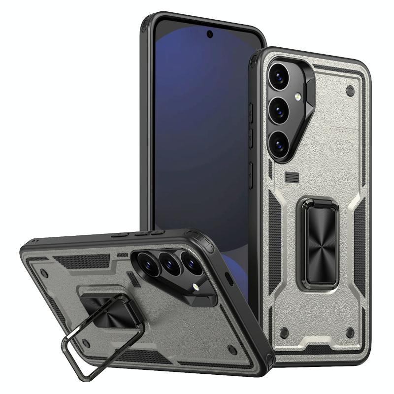 For Samsung Galaxy S24 FE 5G Ring Holder PC Hybrid TPU Phone Case(Titanium Grey)
