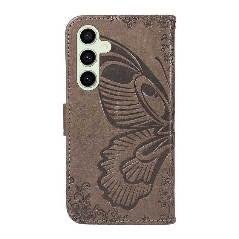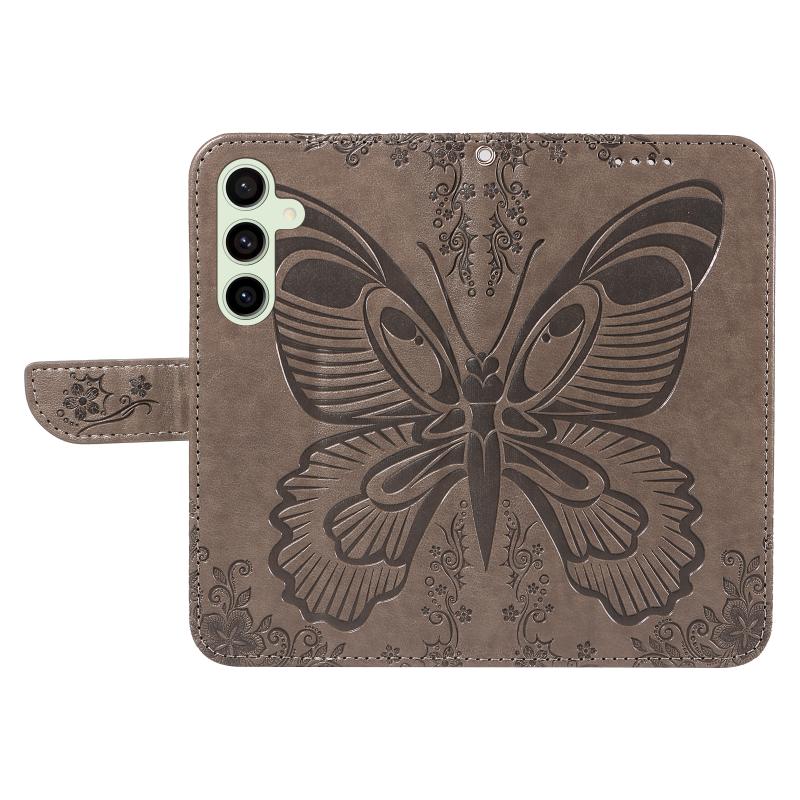 For Samsung Galaxy S24 FE 5G Swallowtail Butterfly Embossed Leather Phone Case(Grey)