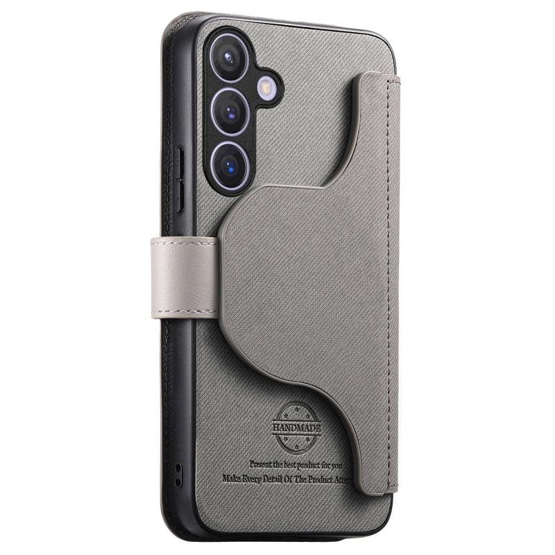 For Samsung Galaxy S24 FE 5G Twill Fabric MagSafe RFID Anti-theft Zipper Wallet Leather Phone Case(Grey)