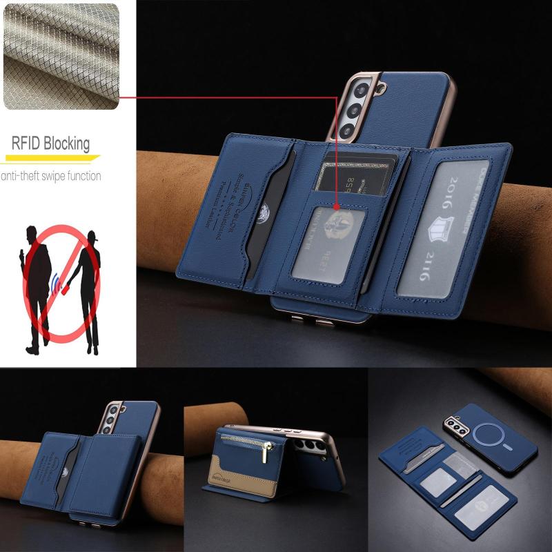 2. Magnetic Tri-Fold Wallet Design: Features a horizontal fold with a strong magnetic closure for easy access and secure storage.