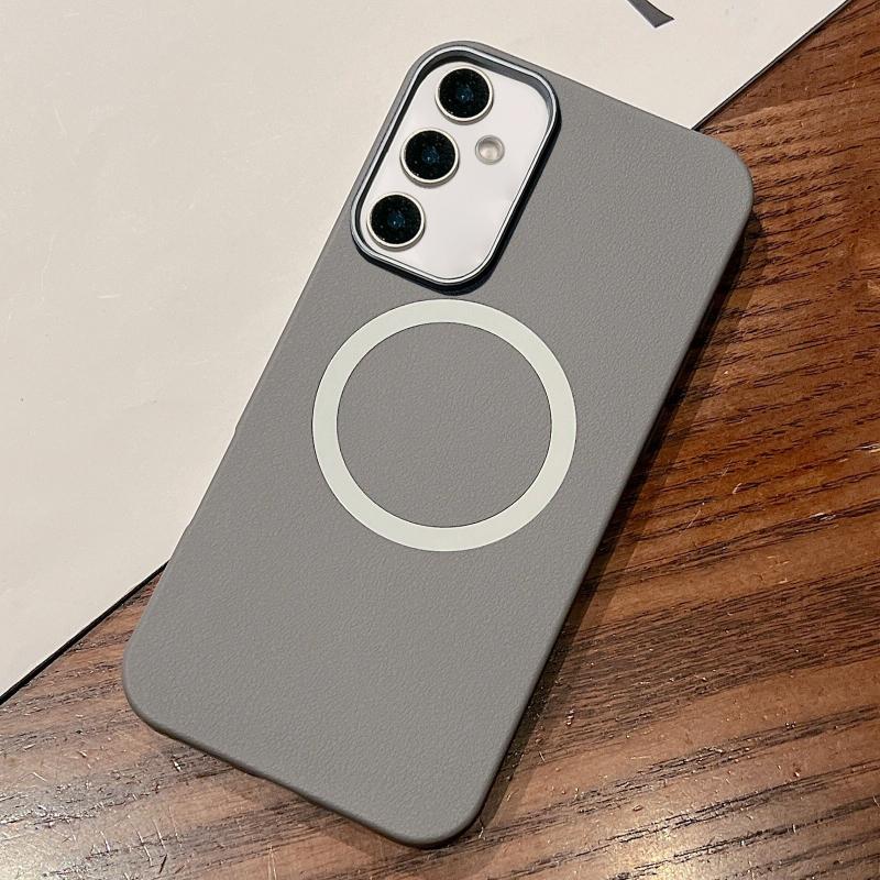 For Samsung Galaxy S24 / S25 5G Leather Texture Design MagSafe Full Coverage Phone Case(Grey)