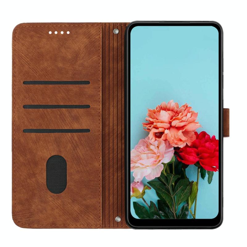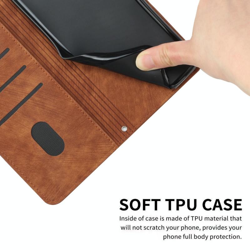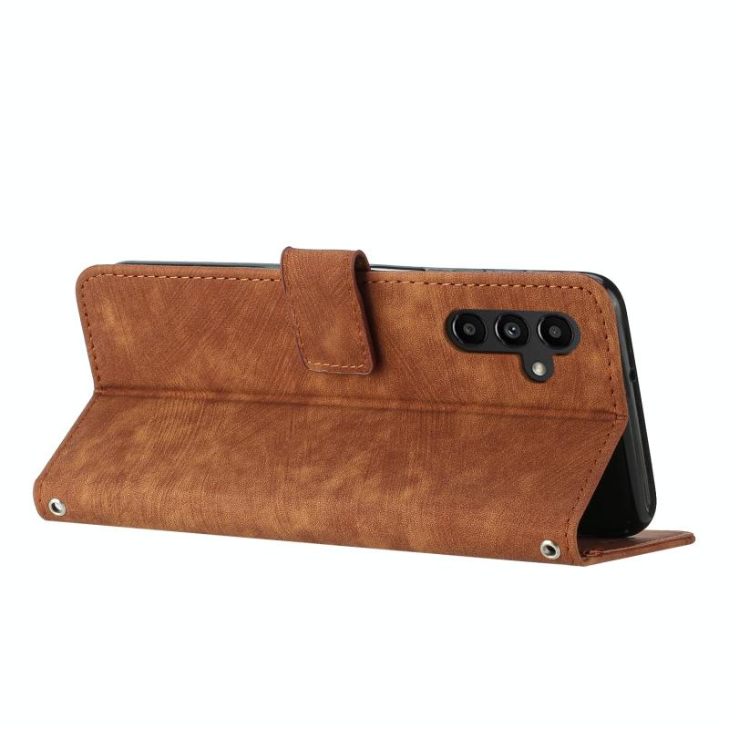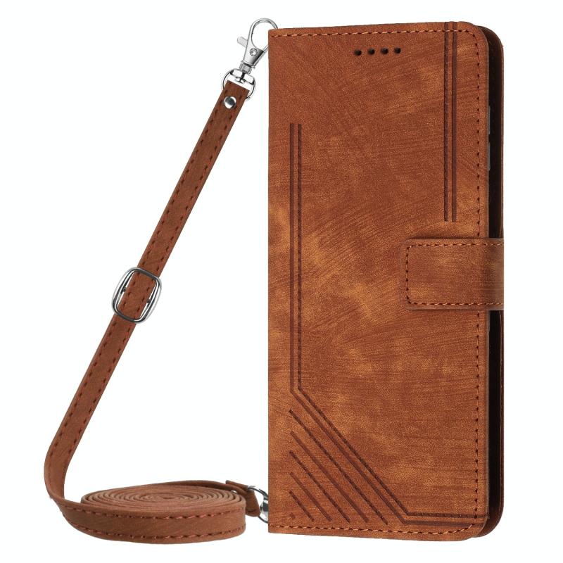 For Samsung Galaxy S24+ Skin Feel Stripe Pattern Leather Phone Case with Long Lanyard(Brown)