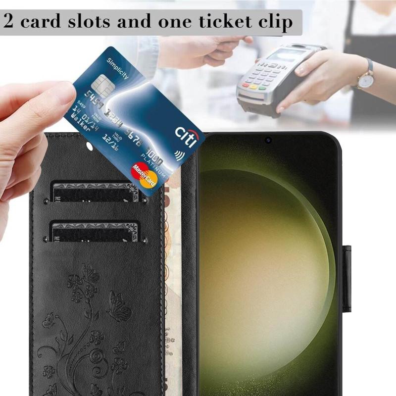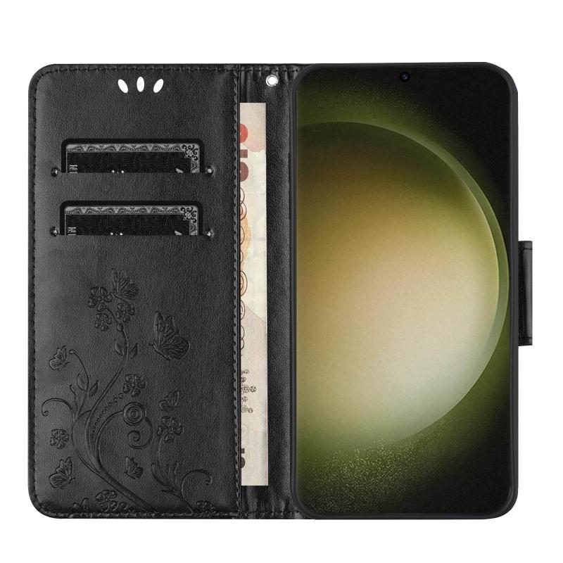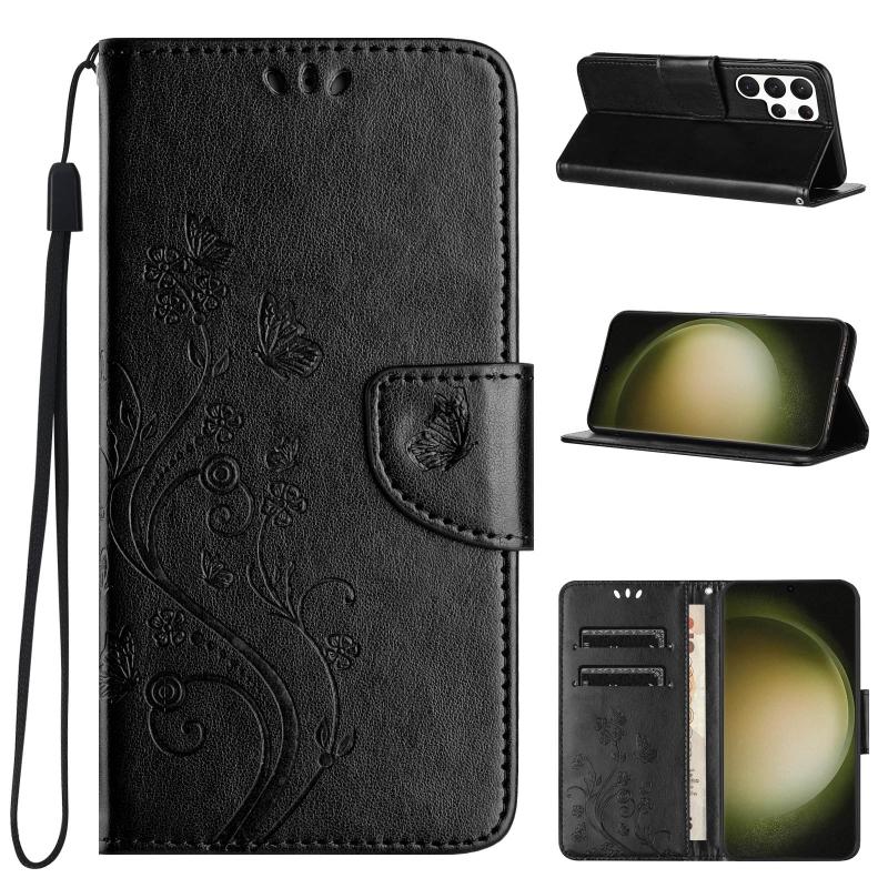 For Samsung Galaxy S24 Ultra 5G Butterfly Flower Pattern Flip Leather Phone Case(Black)
