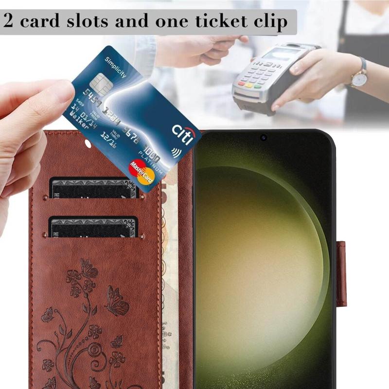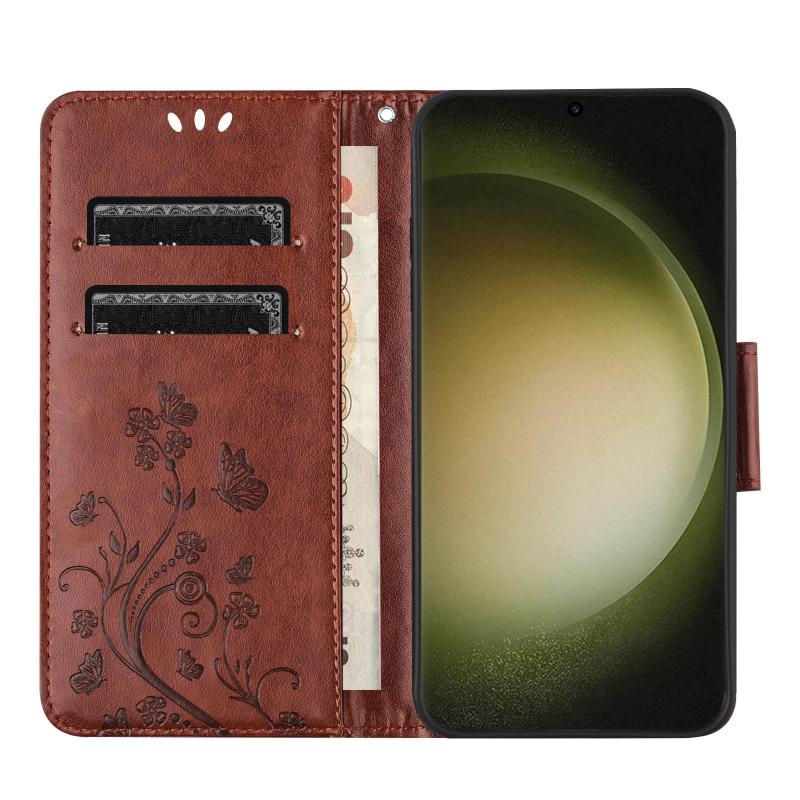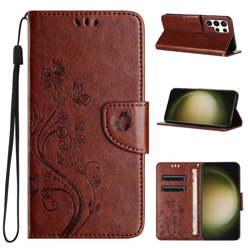 For Samsung Galaxy S24 Ultra 5G Butterfly Flower Pattern Flip Leather Phone Case(Brown)