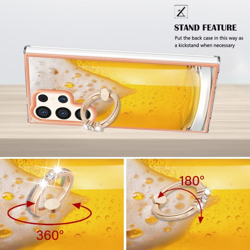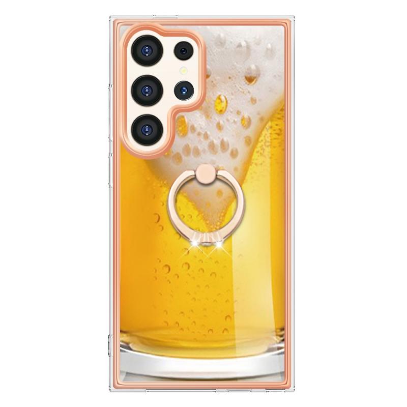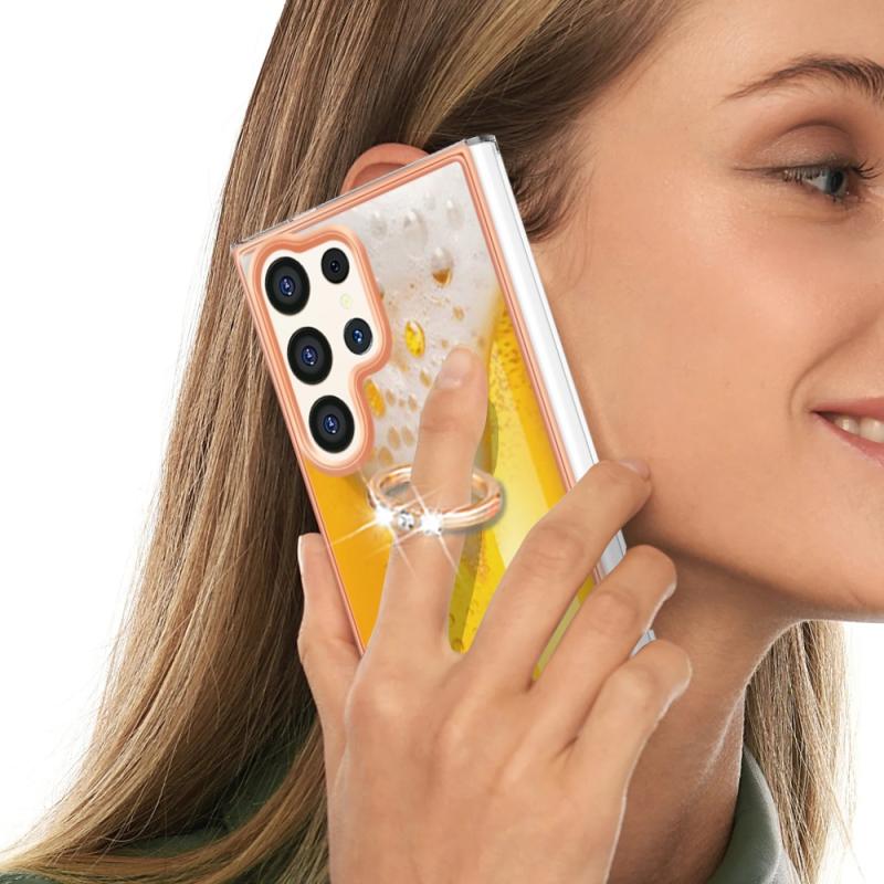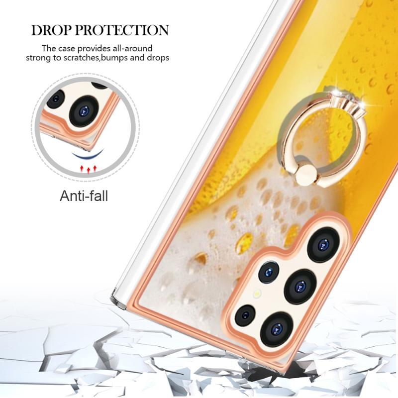 For Samsung Galaxy S24 Ultra 5G Electroplating Dual-side IMD Phone Case with Ring Holder(Draft Beer)
