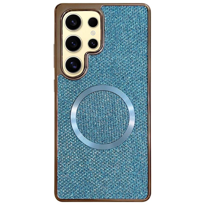 For Samsung Galaxy S24 Ultra 5G Electroplating PC Glitter Grain MagSafe Phone Case(Blue)