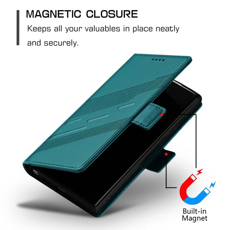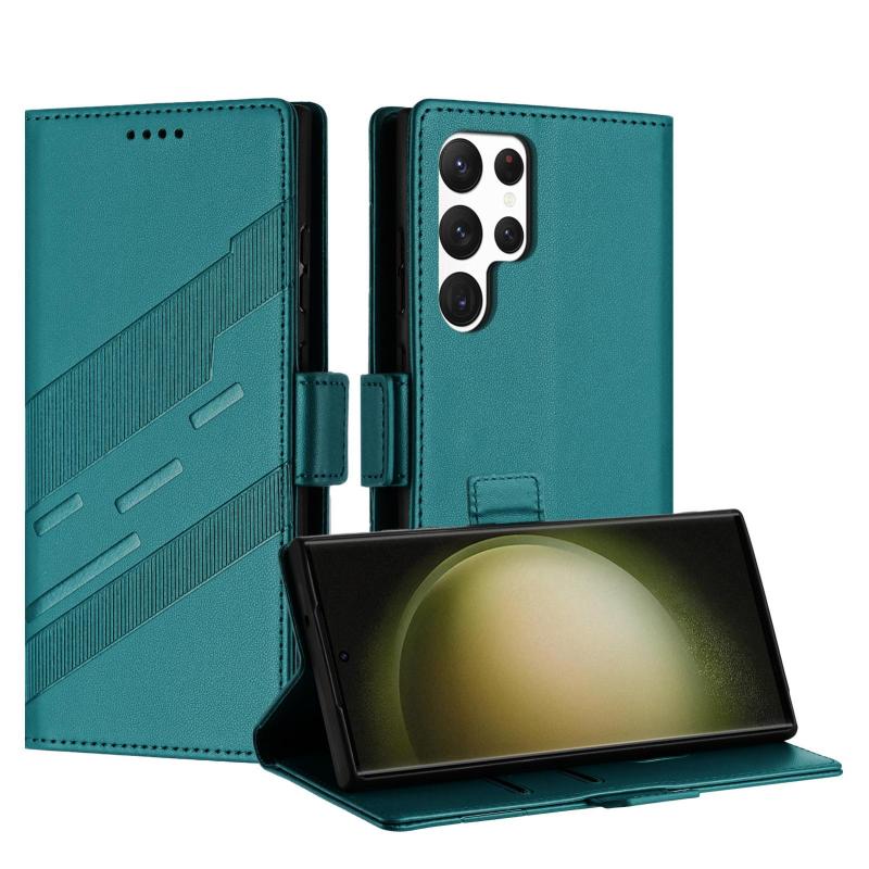 For Samsung Galaxy S24 Ultra 5G Embossed Multi-functional Side Suction Wallet Retro Leather Phone Case(Dark Green)
