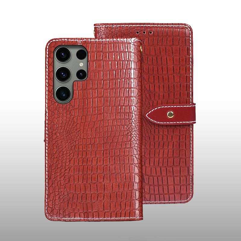 For Samsung Galaxy S24 Ultra 5G idewei Crocodile Texture Leather Phone Case(Red) (idewei)