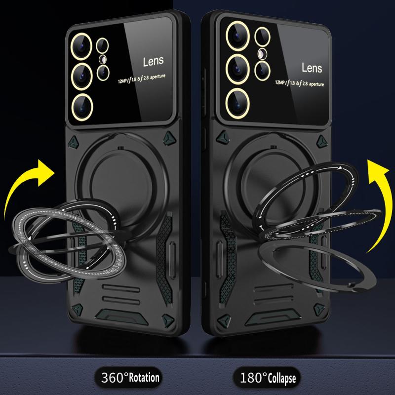For Samsung Galaxy S24 Ultra 5G Large Window MagSafe Holder Phone Case(Blue)