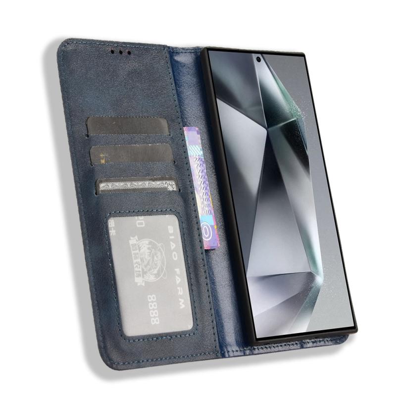 For Samsung Galaxy S24 Ultra 5G Magnetic Buckle Retro Texture Leather Phone Case(Blue)
